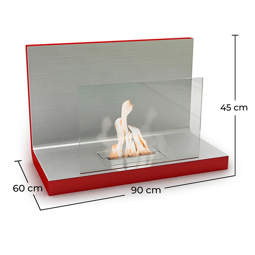 Esta lareira não requer um conduto de escape: adeus ao limpador de chaminés! Esta lareira com um design simples tornar-se-á parte da sua decoração. Pode colocá-la onde quiser, embora seja preferível numa sala bem ventilada. Não espere mais para substituir a sua velha lareira! Além disso, uma lareira a etanol não produz fumo, odores, cinzas, pó, fuligem ou faíscas. Esqueça aqueles troncos de madeira estalando; as chamas produzem apenas vapor de água e o equivalente a 3 velas de dióxido de carbono, criando uma atmosfera acolhedora. Esta combustão emite a mesma quantidade de CO2 que um ser humano, o que torna o processo completamente seguro. A manutenção limita-se ao reabastecimento de combustível (gel de etanol para os recipientes e líquido para o queimador de óleo), um líquido 100% natural, destilado a partir da cana-de-açúcar. A lareira de etanol também é uma ótima fonte de calor que lhe permitirá poupar dinheiro. A sua capacidade térmica é semelhante à produzida por dois ou três radiadores elétricos, dependendo do modelo, e o consumo é muito baixo: de 0,35 L a 0,50 L de etanol por hora. Finalmente, todos os nossos queimadores de etanol possuem paredes duplas (3mm e 2mm) e são 100% soldados para evitar qualquer risco, e todos os materiais utilizados estão em conformidade com as normas de segurança (um sistema de montagem está incluído em todas as lareiras de parede).