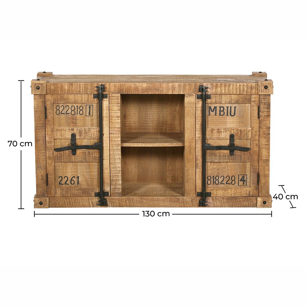 Fica encantado pelo estilo industrial? Com a sua mistura de madeira maciça e metal, esta cómoda vai certamente agradá-lo. Com vários espaços de armazenamento, esta cómoda industrial tem uma prateleira central fixa e 2 portas laterais. Esta cómoda é uma peça de mobiliário robusta e estável, cheia de encanto e originalidade.