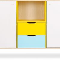 Você precisa dar vida à sua decoração de interiores? Para isso, o que é melhor do que este aparador multicolorido em estilo escandinavo. Graças à combinação de suas diferentes tonalidades e todo o seu espaço interior, você não apenas alegrará a aparência da sua casa, mas também poderá guardar suas coisas. em ordem.