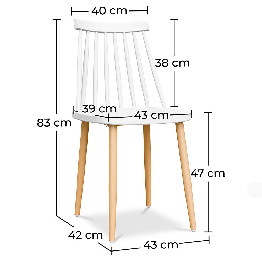 Esta cadeira de sala de jantar inspirada no estilo nórdico vai completar a sua sala de jantar com grande simplicidade. Uma cadeira de plástico com barras de encosto e pernas de metal a imitar madeira.
