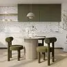 Nossa cadeira de jantar Reece combina elegância e estilo moderno. Esta cadeira de jantar de alta qualidade é totalmente estofada em veludo macio, adicionando um toque luxuoso à sua experiência de jantar em casa. Ela pode ser usada em hotéis, restaurantes, bares ou na sua própria sala de jantar em casa. Esta cadeira é perfeita para aqueles que procuram um design moderno com um toque clássico. O veludo é resistente e fácil de cuidar e permanece em perfeitas condições por muitos anos.