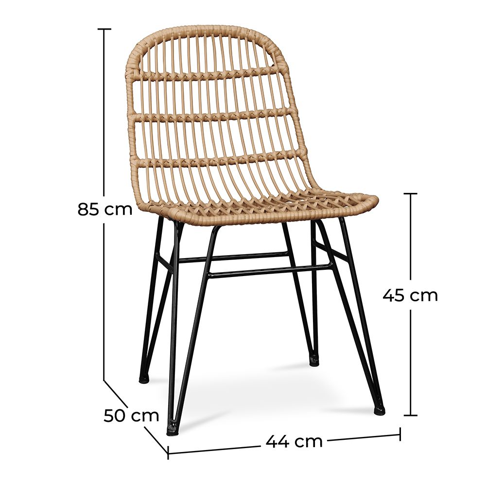 Graças ao seu assento de vime sintético, esta cadeira de jantar vai trazer um toque de exotismo à sua casa. Uma cadeira de vime sintético com pernas de metal preto atualizada de acordo com os gostos atuais. As suas pernas ligeiramente inclinadas constituem um piscar de olhos ao design vintage. Adicione-lhe um toque alegre e exótico com uma almofada colorida.
