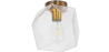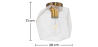 O candeeiro de design moderno apresenta um mostrador em vidro com 20cm de diâmetro e 30cm de altura, disponível em várias cores. O suporte do candeeiro e a base de suspensão são ambos trabalhados em metal e pintados em dourado. Também vem com um fio para ligar à eletricidade, pelo que os proprietários só terão de o ligar.