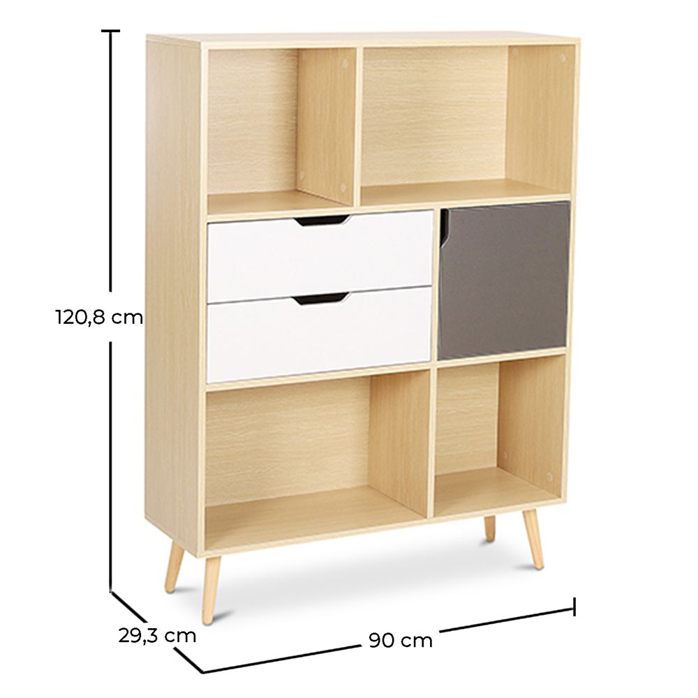 Esta prateleira da biblioteca tem um forte estilo escandinavo graças à combinação de seus tons quentes. Não hesite e leve para casa este armário de biblioteca de madeira de alta qualidade.