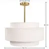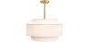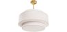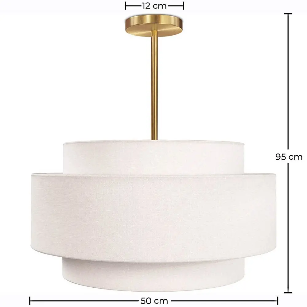 O design desta luminária pendente é uma combinação perfeita de forma e função. O braço metálico dourado se fixa ao teto com segurança, proporcionando uma base estável para a cúpula circular de tecido. A cúpula, elaborada com um tecido de alta qualidade, difunde a luz de maneira uniforme, evitando ofuscamentos e criando uma iluminação suave e relaxante. Esta luminária de teto é uma escolha versátil e elegante para qualquer espaço. Em casa, pode ser peça central na sala de jantar ou na sala de estar, adicionando um toque de charme. Em restaurantes e hotéis, esta luminária cria uma atmosfera acolhedora e elegante em áreas de refeição ou áreas de recepção.