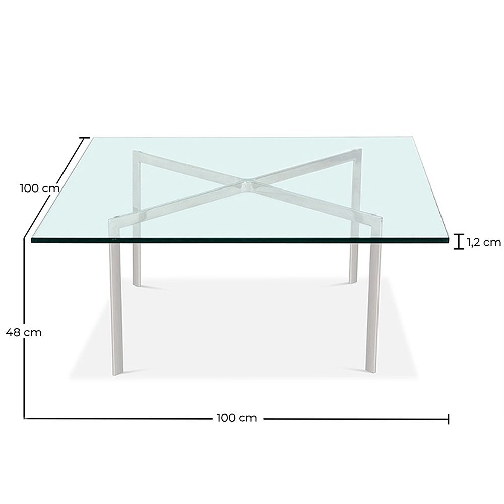 Mesa de Centro City - Quadrada - 12 mm. Com a sua base de metal desprovida de ornamentos, combinada com a sua superfície de vidro endurecido, a mesa de centro City estava destinada a tornar-se numa das peças mais icónicas do mobiliário moderno já concebidas até à data.