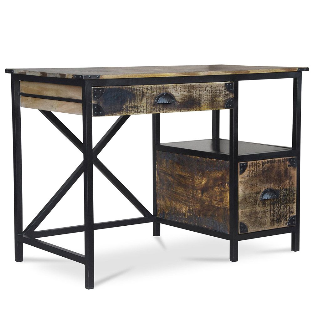 Esta secretária original vai darwood um toque industrial à sua sala de estar, quarto ou escritório. A secretária retro Nash é feita de madeira maciça, tem uma estrutura de metal e um aspeto vintage, cada modelo é único. Os seus materiais de alta qualidade garantem que terá uma secretária duradoura e muito estável. As suas duas gavetas grandes permitem-lhe guardar todo o seu material de escritório de forma ordenada