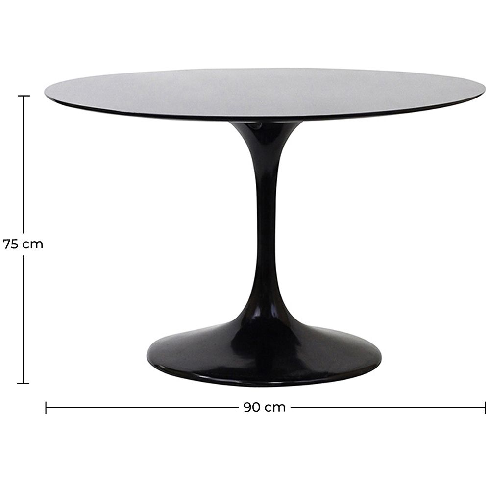 Mesa Tulipa Redonda de Fibra de Vidro - 90 cm. Esta Mesa Tulipa redonda de fibra de vidro faz parte da coleção "Pedestal" juntamente com a cadeira e a poltrona Tulipa . "As pernas das cadeiras e mesas clássicas tornam-nas pouco práticas e dão um aspeto desordenado à sala de estar". "Queria libertar todo esse espaço ocupado pelas pernas na casa". Tal como a flor da qual obtém o nome, esta mesa redonda de fibra de vidro tem linhas delicadas e elegantes. Vai melhorar o aspeto da sua sala de jantar, ao mesmo tempo que é muito útil.