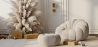 A poltrona com apoio para os pés Calera não só oferece um assento confortável, como também serve como peça decorativa, uma vez que os seus estofos de bouclé são indispensáveis para os amantes da decoração de design.