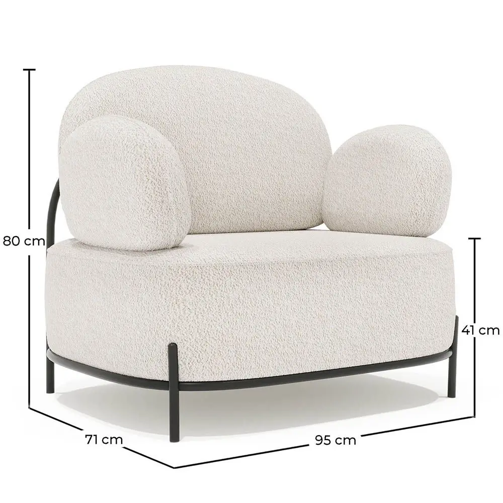 O sofá Munum, estofado em tecido bouclé e com apoios de braços, é uma peça de mobiliário excepcional que combina uma estética impressionante com um conforto excepcional. O estofamento em tecido bouclé, o design cuidadoso e os apoios de braços funcionais tornam-no uma escolha perfeita para aqueles que procuram mobiliário de alta qualidade e estilo para a sua sala de estar. É uma opção perfeita para aqueles que desejam adicionar um toque de luxo e sofisticação ao seu espaço. Seja numa sala de estar contemporânea ou num ambiente mais tradicional, este sofá tornar-se-á o centro das atenções, elevando o estilo e a elegância de qualquer sala.