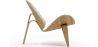 Poltrona CW07 - Caxemira. A Poltrona CW07 foi concebida em 1963 por Hans J. Wegner e produzida em pequenas quantidades nessa altura. A sua reprodução começou a ser feita no início dos anos 90 e logo esta se tornou num ícone de estilo graças ao seu design incomum. Hans J. Wegner dobrou e retorceu a madeira em três dimensões para formar um assento resistente cujos contornos se adaptam à forma do corpo. Está disponível numa variedade de tecidos e couros.