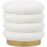 Desfrute do máximo conforto e estilo com o nosso pufe redondo estofado em tecido bouclé que lembra a lã de carneiro. Com uma estrutura de madeira e uma base dourada, este pufe combina elegância e modernidade em um design único. O seu estofamento macio e acolhedor proporciona uma experiência de assento luxuosa, enquanto o seu design redondo oferece um aspecto contemporâneo. Perfeito para adicionar um toque de sofisticação a qualquer espaço, este pufe é sinônimo de qualidade superior e estilo refinado.
