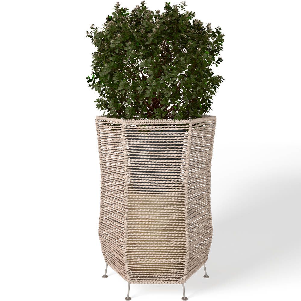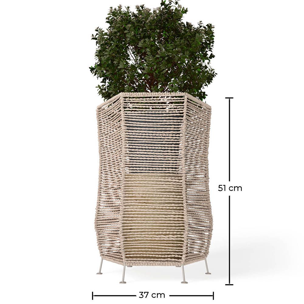 Descubra a harmonia entre o exuberante e o industrial com nosso vaso Gremah. Seu design entrelaçado com fibras naturais cria uma sensação de calma e conexão com a natureza, enquanto a estrutura metálica dourada adiciona um toque de glamour boêmio. Este vaso é ideal para aqueles que desejam incorporar um toque de luxo boêmio ao seu espaço, transformando qualquer canto em um oásis de serenidade e estilo.